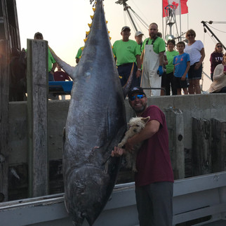 The fishing part of the tourney starts Tuesday evening with a 7:00 p.m. shot gun start. It was a beautiful night and there was a large gathering at the wharf for the sendoff. There were 16 boats in total participating. I was on the Atlantic Angler with Joel and Eric and teammates Jordan, Marcel, Birdie, Lucky, and Landon. Landon and I were first time participants in the